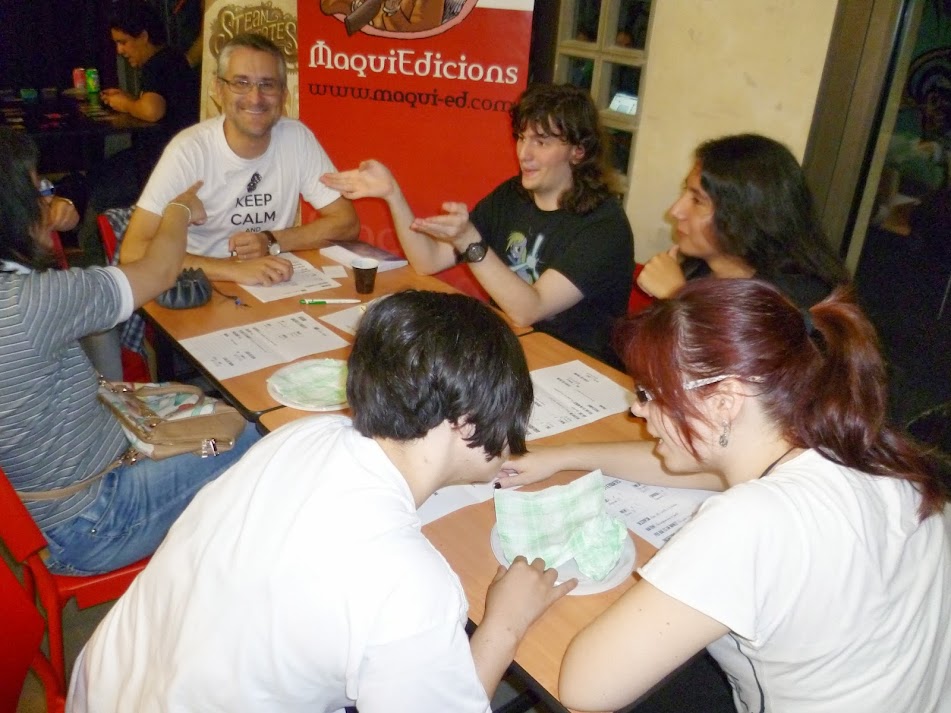 Amb aquesta ambientació tant especial i atractiva, les jornades van començar més aviat fluixes (moltes activitats interessants alhora), però a mesura que la tarda del dissabte avançava alguns assistents es van anar acostant a la nostra taula, primer per adquirir el seu exemplar (signat i dedicat), i després per apuntar-se a la partida de presentació.